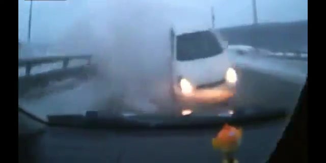 In Tomsk in Russland kam es zu einem Horror Crash. Durch starke Schneeverwehungen auf der entgegenkommenden Spur wurde ein Auto auf ein anderes geschleudert. Nicht einmal die Leitplanke konnte es mehr stoppen.