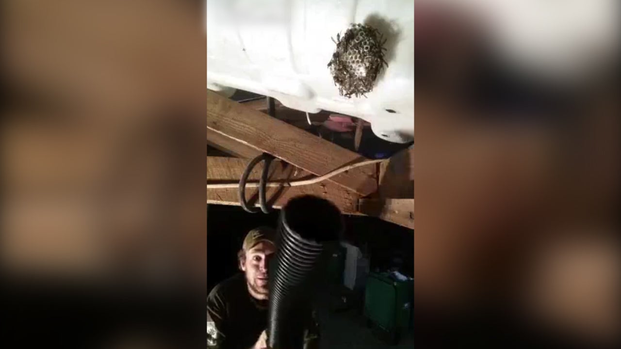 Dieser Mann nutzt seinen Staubsauger um Wespennester loszuwerden.