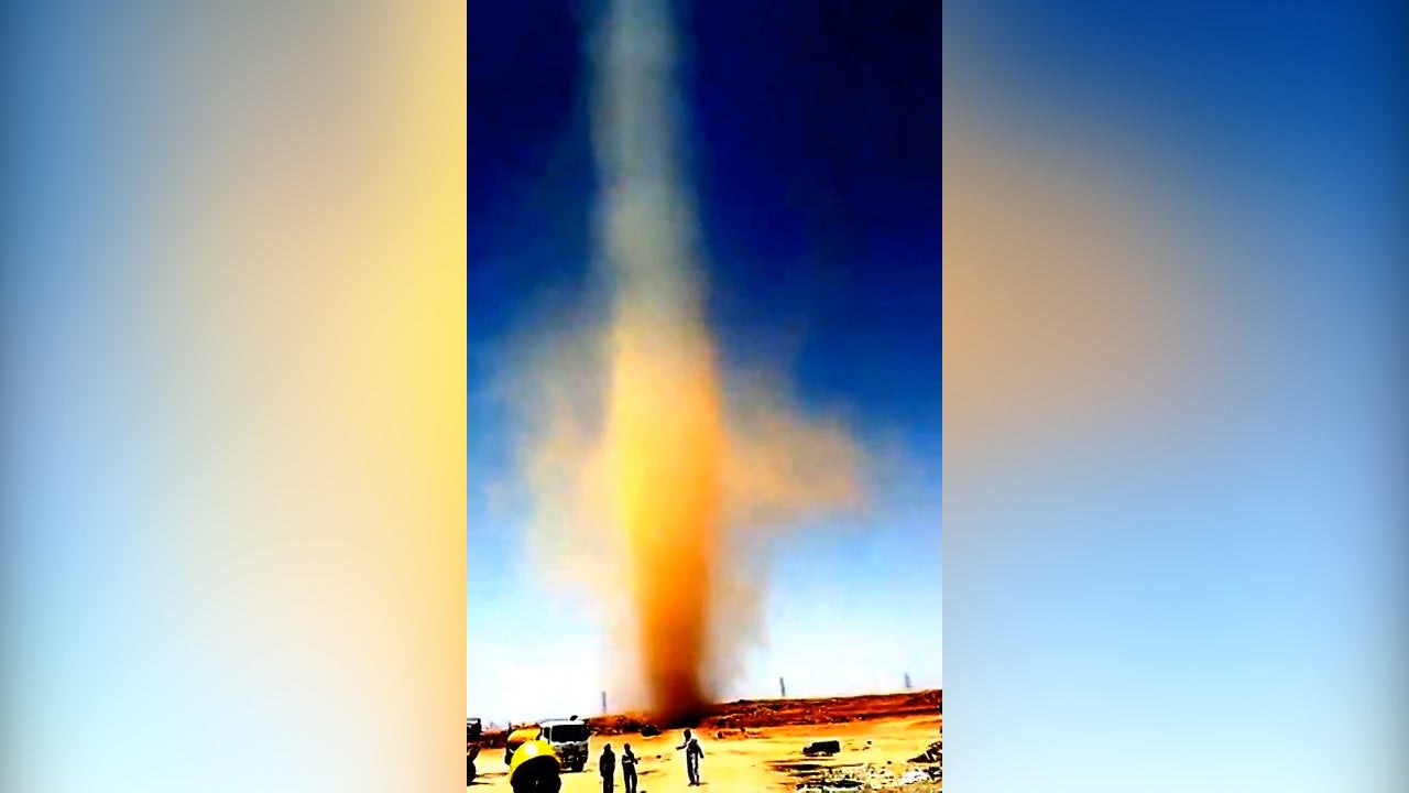 So sieht ein kleiner Staubteufel in der saudi-arabischen Wüste aus.