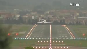 In Nordspanien hat ein Sturmtief zu heftigen Turbulenzen an Bord mehrerer Flugzeuge geführt. Dieses Video zeigt die spektakuläre Landung.