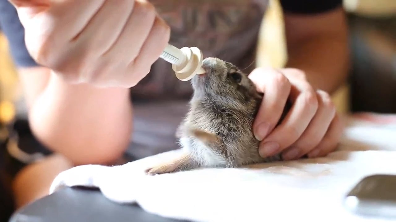 Diesem süßem Baby-Hasen scheint seine Medizin sehr zu schmecken.