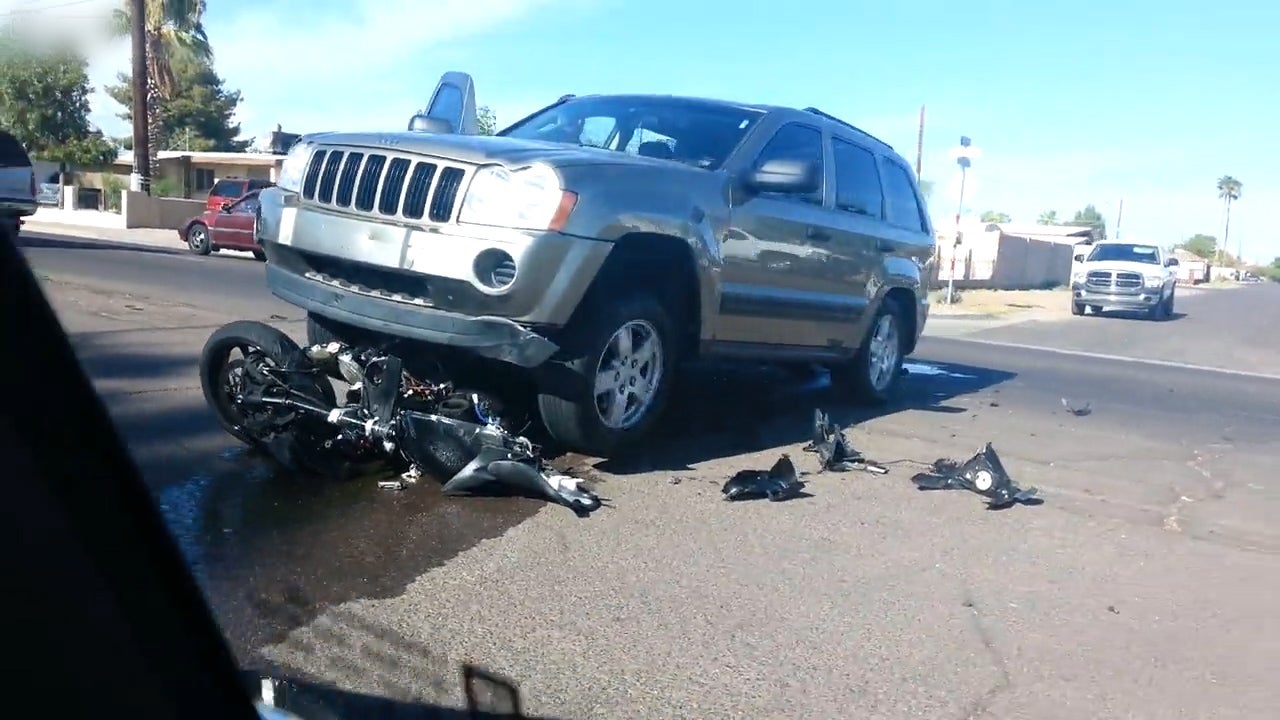 Diesen Motorradfahrer hat es schlimm erwischt. Ein SUV hat ihn gerammt.