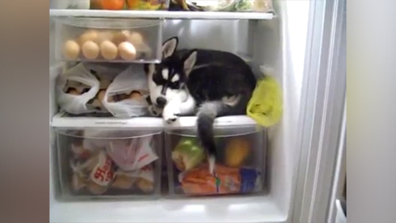 Dieser Hund hat es gerne kalt: er rastet am liebsten im Kühlschrank.