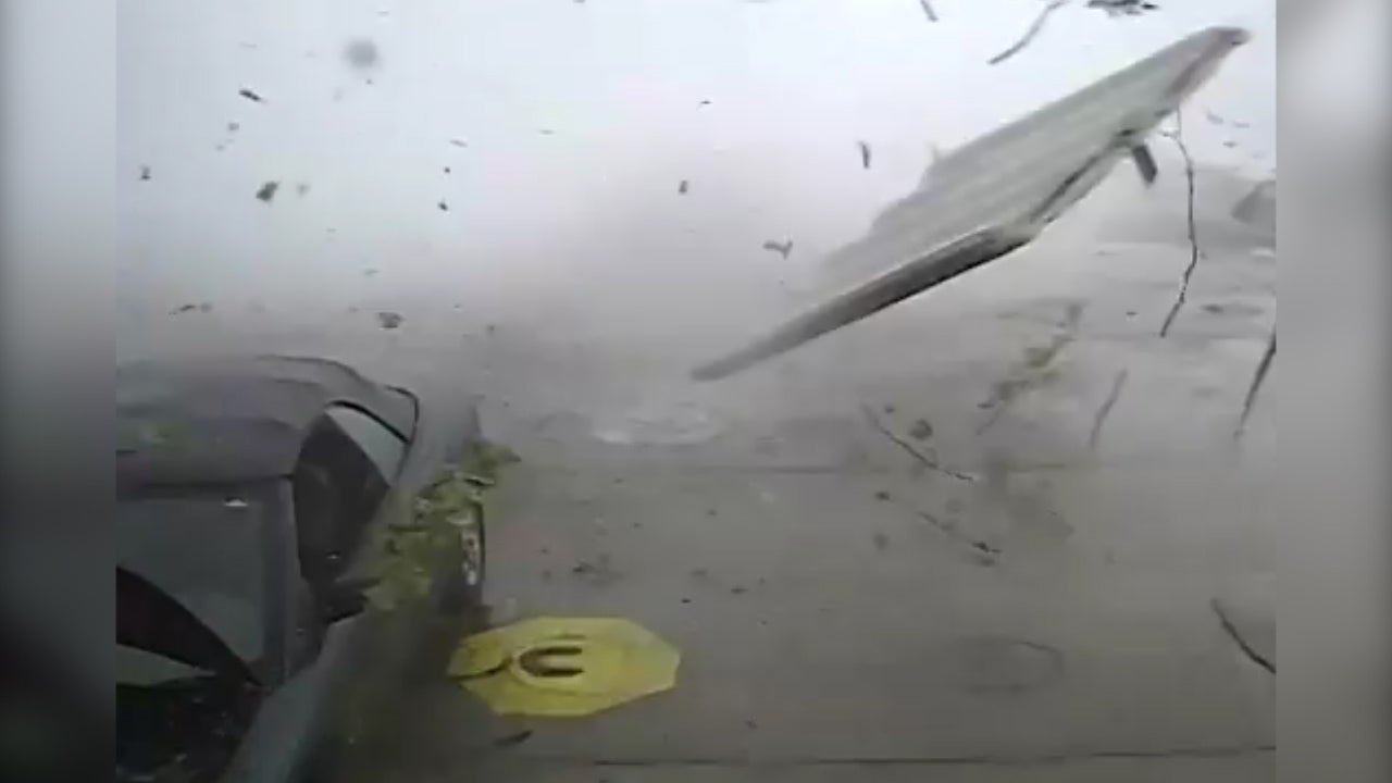 Die Überwachungskamera einer Tankstelle im US-Staat Wisconsin zeichnet diesen Tornado auf.