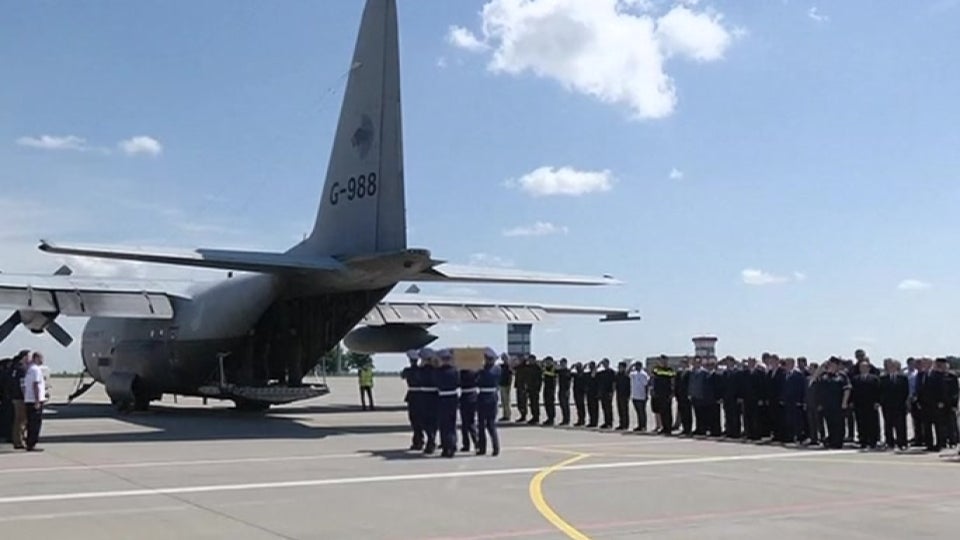 In Charkiw wurden am Mittwochmorgen die ersten Särge mit Opfern des Flugunglücks verladen.