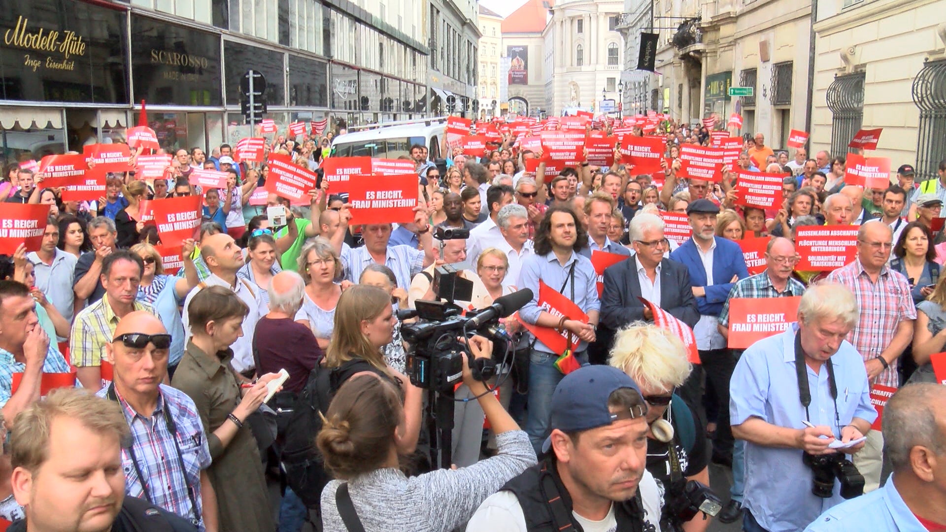 Hunderte Traiskirchner folgen am Dienstag dem Aufruf von Bürgermeister Andreas Babler (SPÖ) in Wien gegen die Innenministerin zu demonstrieren.