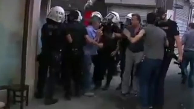 Istanbul kommt nicht zur Ruhe. Wieder ging die Polizei mit Tränengas und Wasserwerfern gegen die Demonstranten vor. Im ersten Teil des Videos sieht man einen Mann der mit einer Machete Passanten hinterherjagt.