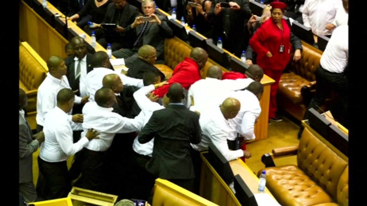 Chaotische Szenen spielten sich im südafrikanischen Parlament in Kapstadt ab.