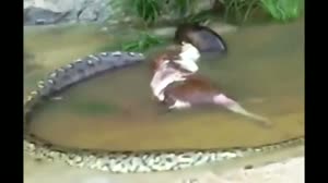 Anakondas sind riesige Würgeschlangen, die problemlos selbst ausgewachsene Alligatoren in einem Stück verschlingen können. Doch in diesem Video dürfte sich die Riesenschlange ein wenig übernommen haben: Sie versucht, ihre "Beute" wieder los zu werden und windet sich, bis sie eine ganze Kuh wieder ausgewürgt hat.