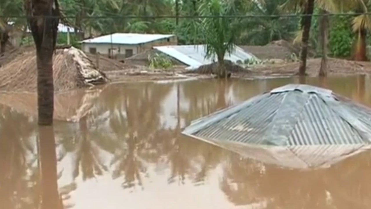 Heftige Regenfälle haben Flüsse über die Ufer treten lassen. Viele Häuser sind völlig überflutet.