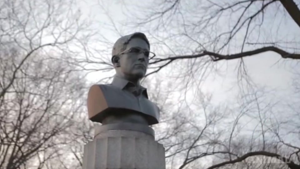 Unbekannte stellten in New York eine Büste von Edward Snowden auf.