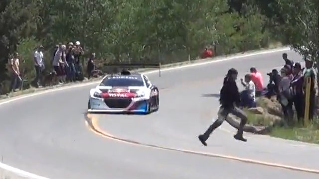 Unglaublich aber wahr. Diese Männer überqueren eine Rennstrecke während das Spektakel im vollen Gange ist. Nur knapp werden sie von einem der Boliden verfehlt.