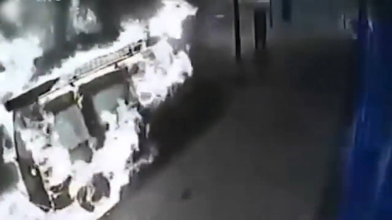 Dieser Van fängt plötzlich Feuer und explodiert auf offener Straße.