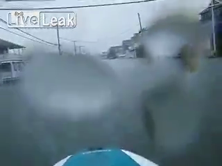 Trotz Sturmwarnung war dieser Verrückte inmitten der hohen Wellen mit seinem Jetski unterwegs und filmte sich dabei auch noch selbst.