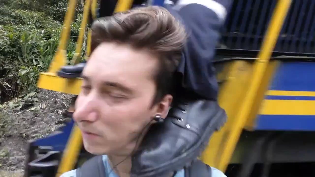 Jared Michael wollte ein Video von sich vor einem vorbeifahrenden Zug machen. Laut seinen eigenen Worten befand er sich in “sicherer Distanz”. Das war dann wohl Nichts. Der Lokführer des vorbeifahrenden Zugs streckte kurzerhand seinen Fuß aus und traf ihn gekonnt am Kopf.