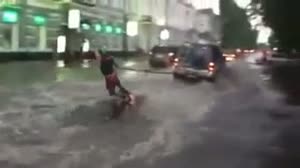 Dass Not erfinderisch macht, zeigt dieser Russe bei seinem spektakulären Verkehrsmanöver. (Quelle: Youtube)