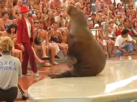 Dieses Walross ist ein Hit! In einem russischen Wasser-Zoo zeigt es eine besondere Show. Begleitet von einer in rot gekleideten Trainerin tanzt es zu dem Michael Jackson-Hit "Bad".