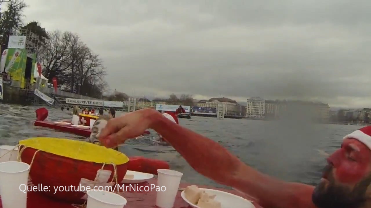 Halb nackt, nur mit Badehose bekleidet treffen sich mehr als 1500 Wasserratten in Genf.