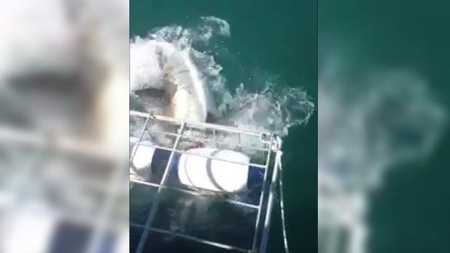 Eine frischvermählte Frau wäre in Südafrika beinahe am Tag nach ihrer Hochzeit schon wieder zur Witwe geworden, denn sie und ihr Ehemann gingen auf eine Tauchtour, die beinahe tödlich geendet hätte. Ein Hai mit einem schmalen Kopf ignorierte den Köder und schwamm direkt auf den Tauchkäfig und rammte seine spitzen Zähne in den Käfig.