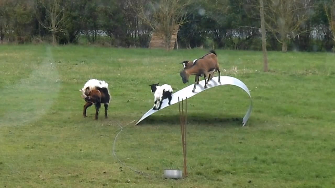 Dieses extrem lustige Video kursiert derzeit im Netz. Das Balancieren scheint den Ziegenwirklich Spaß zu machen. Denn immer und immer wieder klettern sie auf das wackeligeBlech.