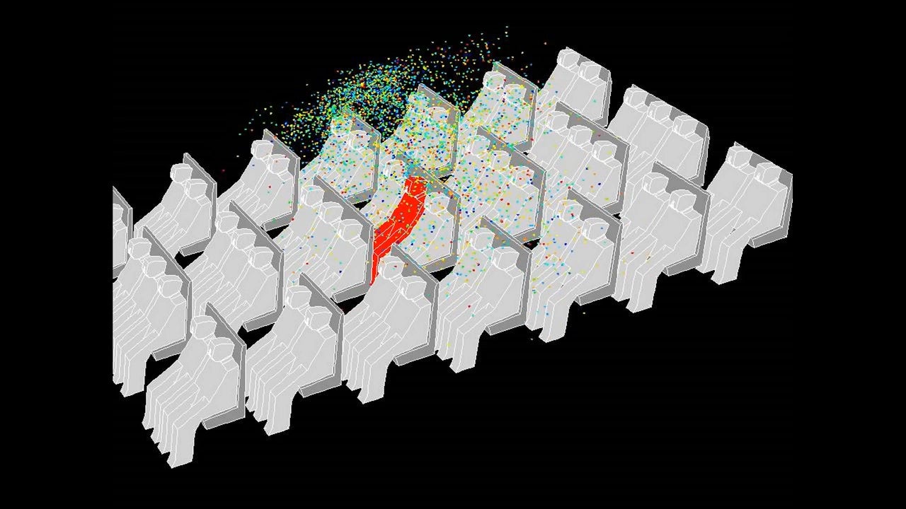 Diese Simulation zeigt was beim Niesen in einem Flugzeug passieren kann.