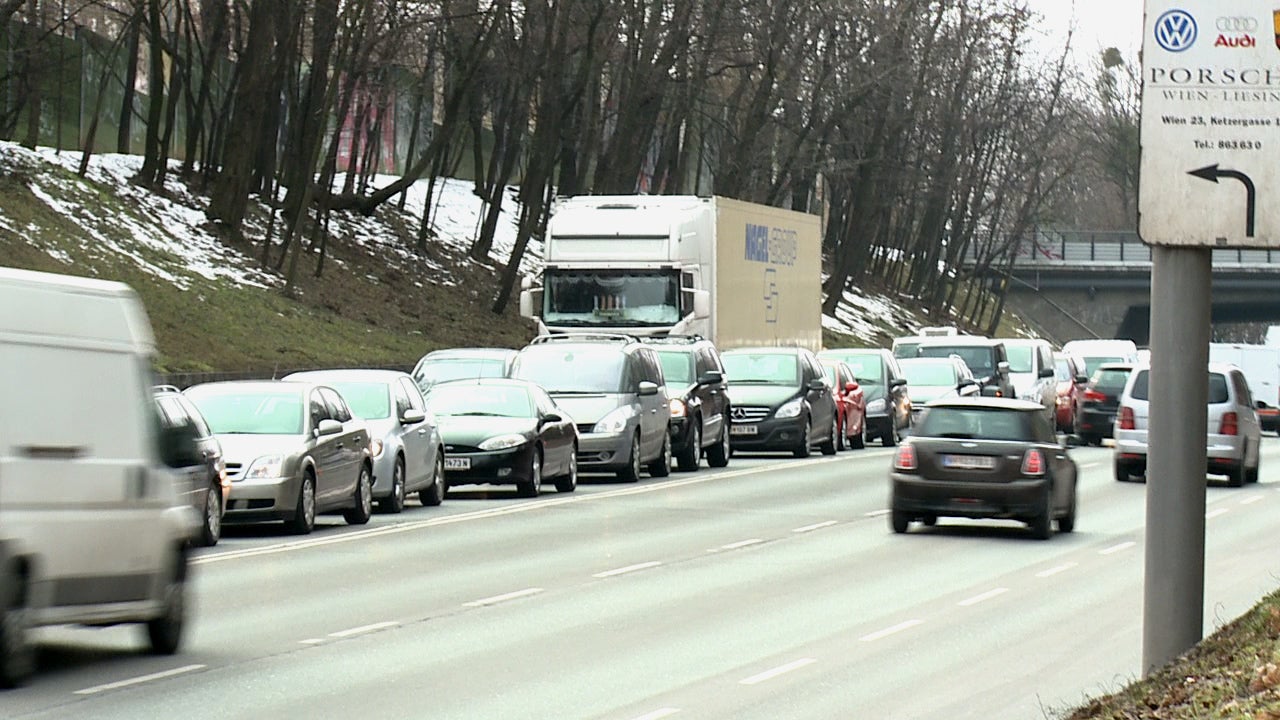 Verkehrschaos für Pendler in Wien: Ein Wasserrohrbruch auf der Grünbergstraße, eine der meistbefahrenen Straßen Wiens, in Höhe der Tivoligasse sorgte für massive Verkehrs-Probleme in der Früh. Es ist derzeit nur ein Fahrstreifen frei.