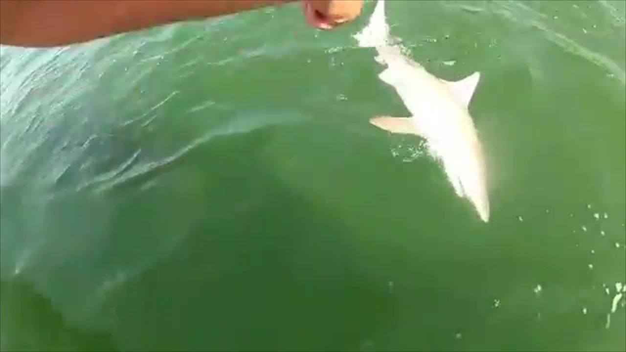 Ein Zackenbarsch schnappt sich einen 1 m langen Hai in einem Zug.