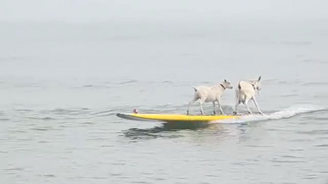 Ein ungewöhnliches Bild gab sich den Strandbesuchern in Orange County, Kalifornien. Zwei Surfer haben es sich zur Aufgabe gemacht ihren zwei Ziegen das Surfen beizubringen.
