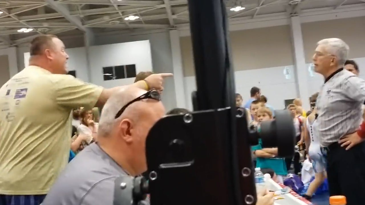 Als sein Sprössling auf der Matte festgenagelt wird rastet ein Vater in Virginia Beach, Virginia, USA aus: Wild gestikulierend schreit er den Schiedsrichter an und fordert Gerechtigkeit für seinen Sohn.