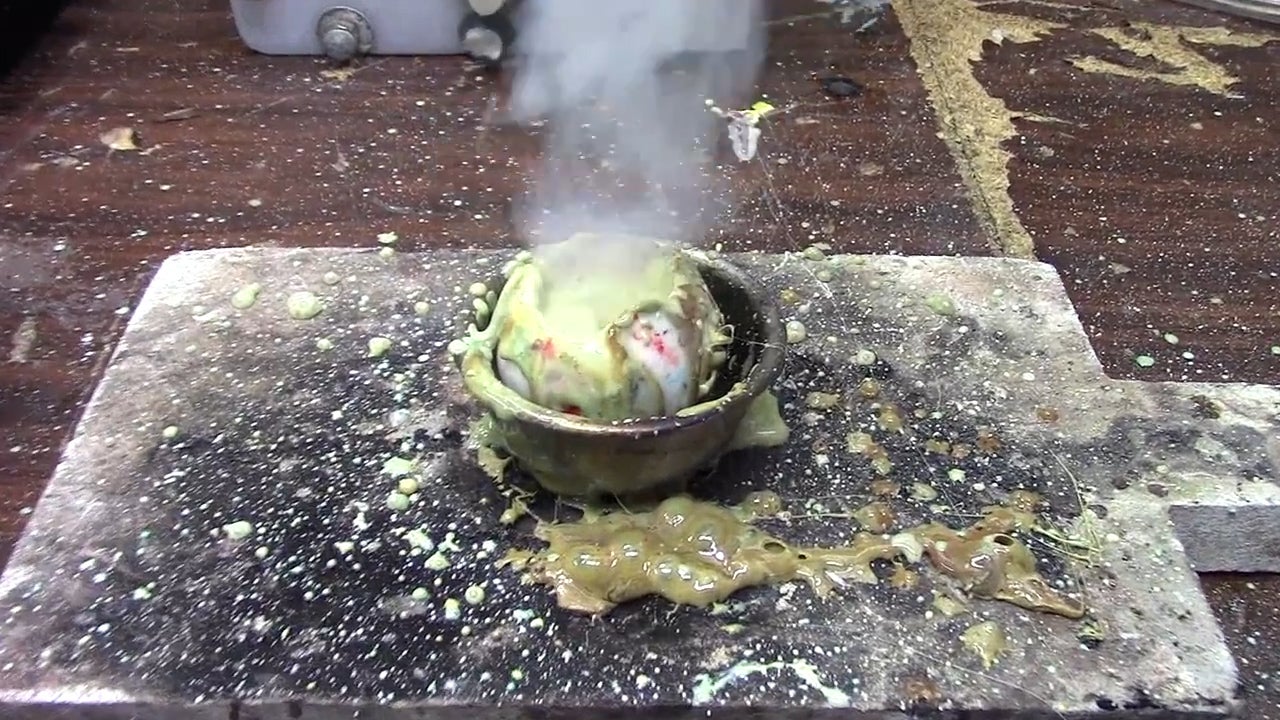 Süßigkeit "Jawbreaker" wird von einer heißen Metallkugel geschmolzen.
