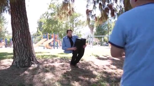 Andy Gross ist ein bekannter Magier und Comedian. Bei seinem neuesten "Streich" spaziert er mit seinem zweigeteilten Körper durch die Straße und schockt dabei zahlreiche Passanten.