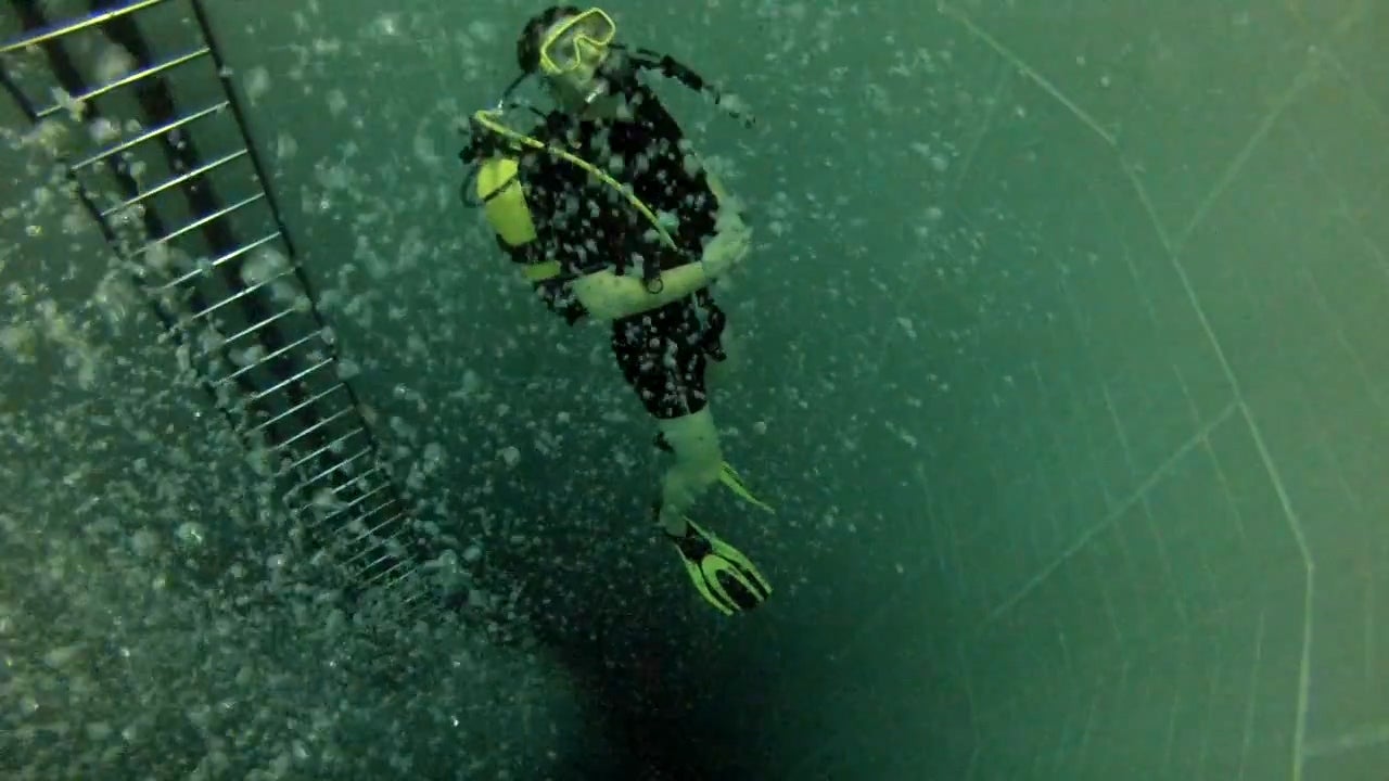 Spektakuläre Aufnahmen liefert uns ein Taucher, der die Tiefen des "Nemo 33"- Taucherbeckens erkundet.