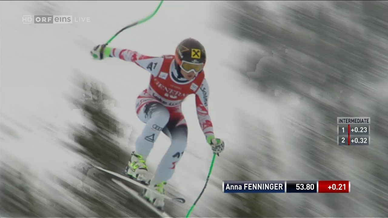 In Lake Louise fährt Anna Fenninger als neunte Fahrerin durchs Ziel