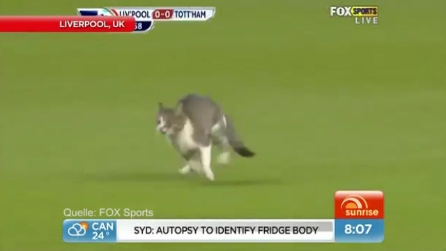 Bei dem Fußballspiel Liverpool gegen Tottenham am Montag kam es zu einer Spielunterbrechung. Der Grund dafür war eine auf das Spielfeld gelaufene Katze.