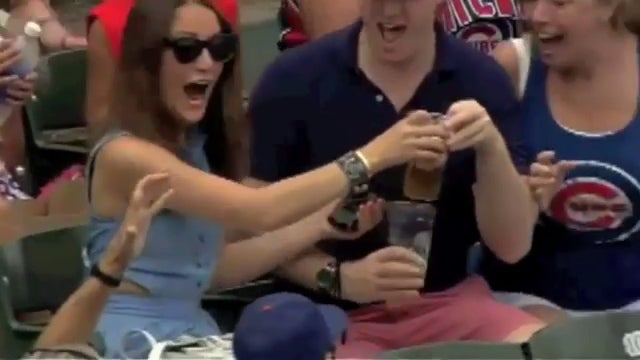 Der Schlag dieses Schlagmanns bei einem Baseballspiel am Wrigley Field landete genau im Bierbecher eines Fans. Gut gefangen.