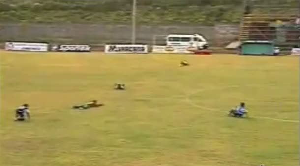 Bei der Nachwuchspartie zwischen Nautico und Ypiranga-PE in im Bundesstaat Pernambuco, Brasilien sorgte ein Bienenschwarm nach einer halben Stunde für eine spektakuläre Unterbrechung.