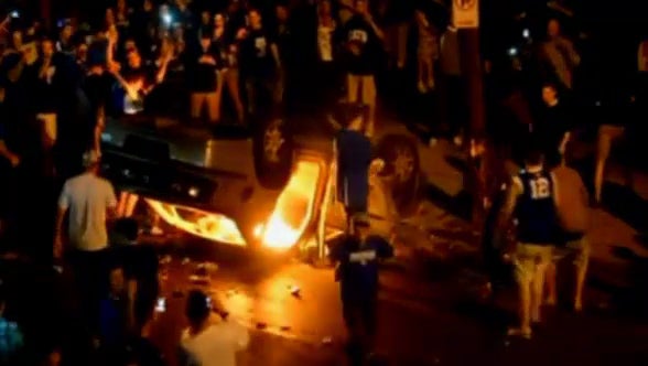 Die Fans einer College-Basketballmannschaft aus Kentucky haben in der Hauptstadt Lexington schwere Verwüstungen angerichtet, nachdem ihr Team im Finale gewonnen hat.