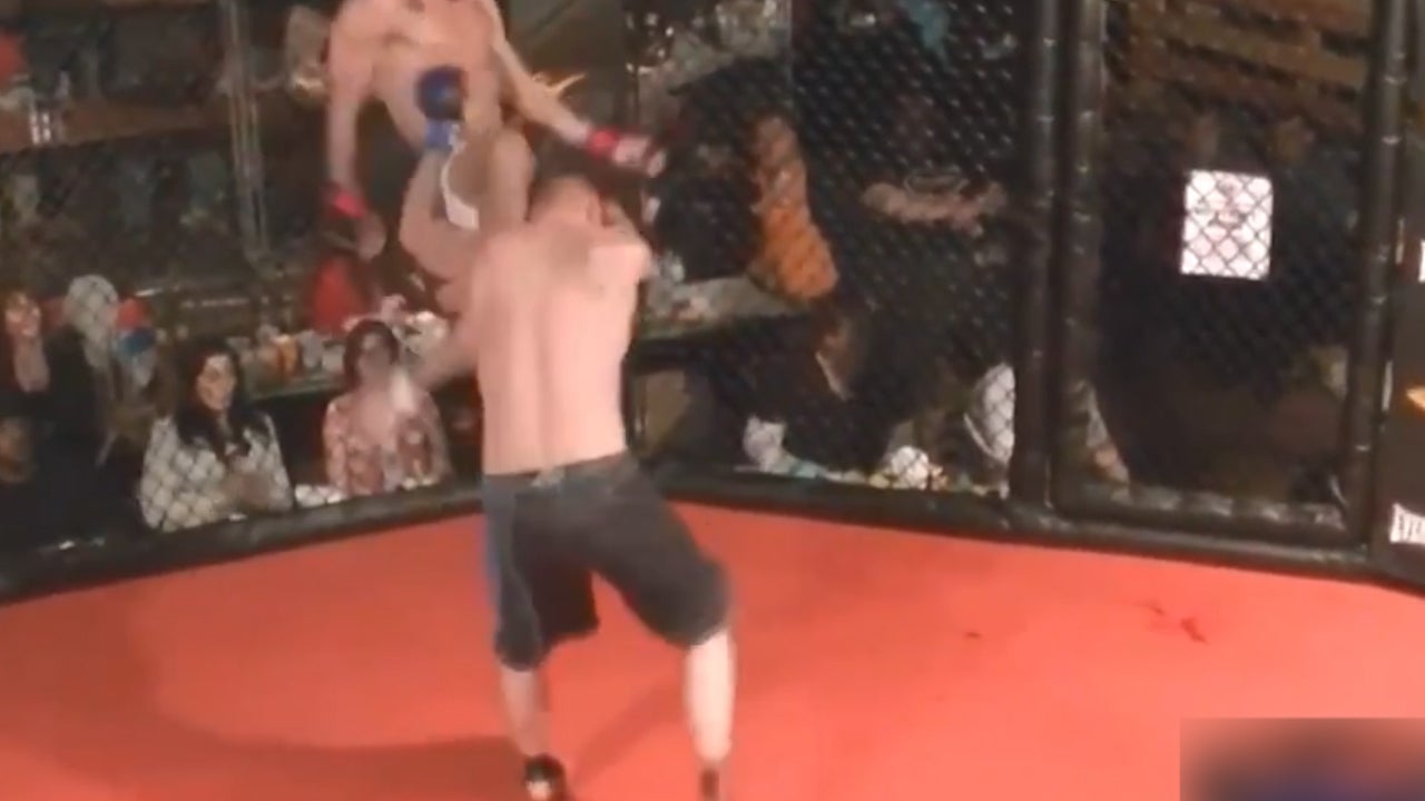 In diesem Amateurkampf gibt der gewinnende Kämpfer auf. Laut eigenen Angaben wollte er seinen Gegner nicht sinnlos verletzen.