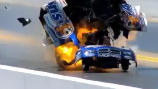 Während eines Beschleunigungsrennens (Drag racing) im US-Bundesstaat North Carolina kam es zu einem dramatischen Unfall. Bei einer Geschwindigkeit von über 400 Stundenkilometern fängt ein Wagen Feuer, explodiert und zerfällt in seine Einzelteile.