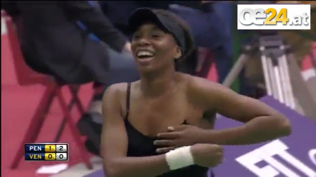 Tennis-Lady Venus Williams (31) sorgte bei einem Show-Match in Mailand gegen die Italienerin Flavia Pennetta auf kuriose Weise für Aufsehen: Bei einer Ausholbewegung während eines Ballwechsels riss Williams das Schulterband ihres Tenniskleides.