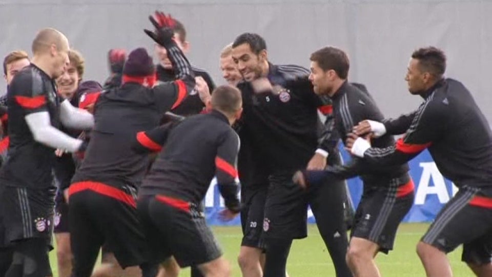 Entspanntes Training der Bayern-Spieler vor dem Spiel gegen Manchester City.
