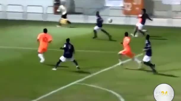 Bei einem Fußballspiel in Hong Kong erzielt ein Spieler ein spektakuläres Tor mit der Ferse.