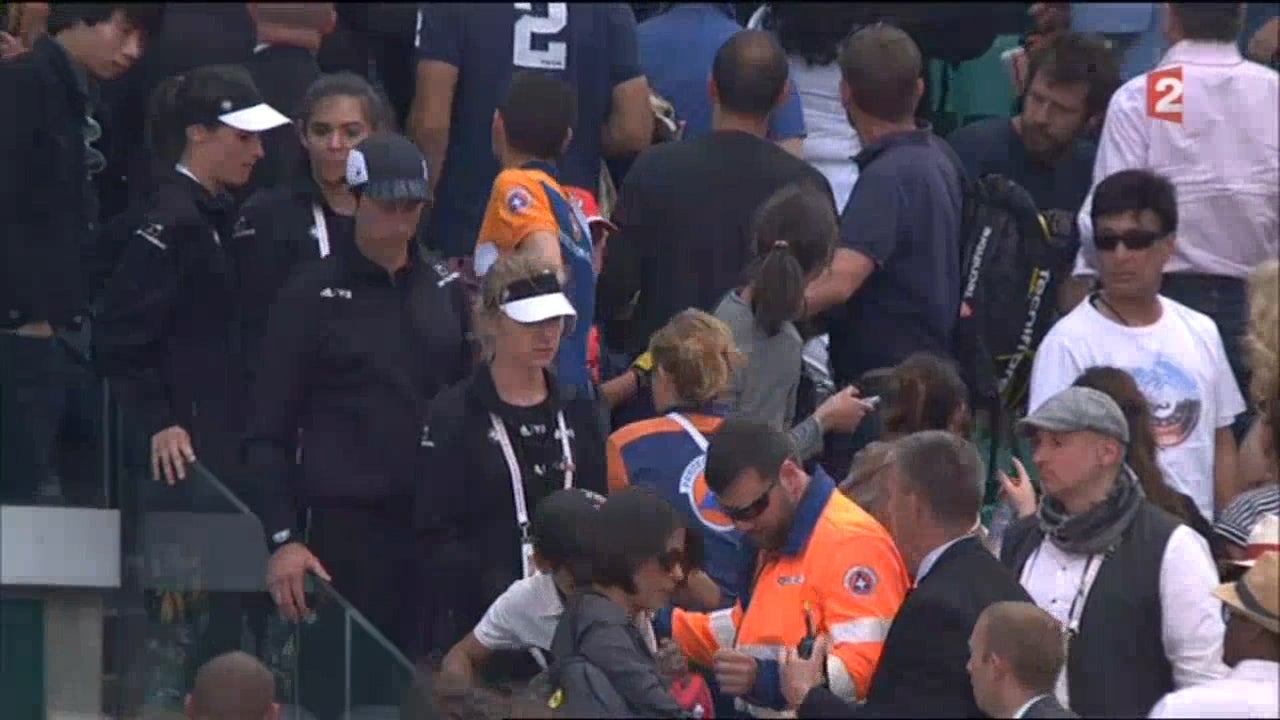 Beim French Open Turnier kracht plötzlich die Leinwand auf die Zuseher.