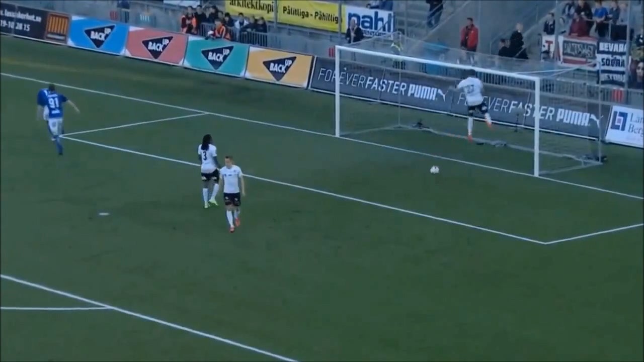 Aus Ärger über ein Tor knallt dieser Fußballer mit dem Kopf auf die Torlatte.