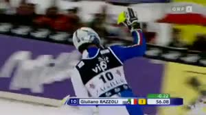 Der Italiener Giuliano Razzoli fängt Kostelic um 22 Hundertsel ab.