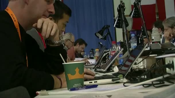 Emsige Arbeitsatmosphäre im Pressezentrum. Hier treffen sich Journalisten und Fotografen.
