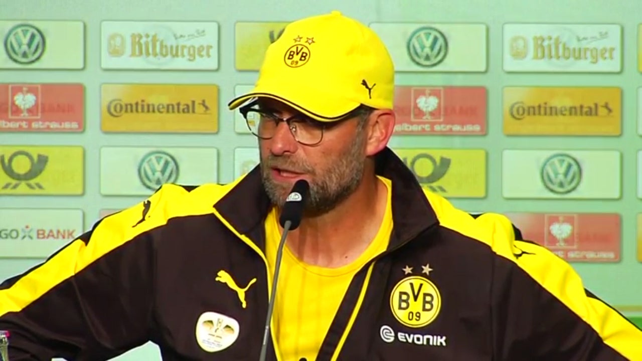 Der (ehem.) Dortmund Trainer Jürgen Klopp gratuliert Wolfsburg zum DFB-Pokalsieg.