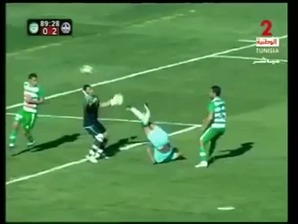 Der tunesische Mittelfeldspieler Mohamed Nasri vom Zweitligisten Monastir erzielt beim 2:0-Sieg gegen Sportive Djerba mittels eines unglaublichen Kunststücks ein sensationelles Tor. Dem Torhüter bleibt nur noch das Staunen.