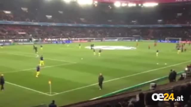 Vor dem Champions League-Kracher gegen den PSG zeigen Messi und sein Kollege Dani Alves wie sich die Stars aufwärmen.