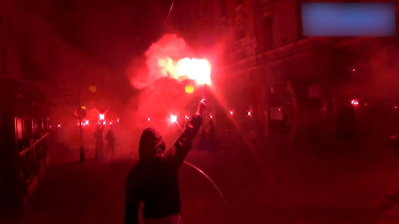 Polnische Fans inszinieren eine spektakuläre Pyro-Show für ihren Verein.